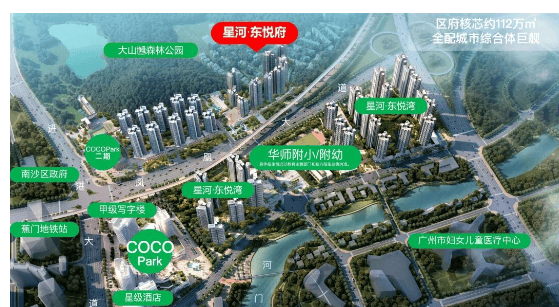 项目距离地铁4号线蕉门站仅约600米,步行8分钟可达;华南师范大学附属南沙小学东悦湾校区一桥之隔,已开学招生;星河COCO Park大型商业体就在家门口,生活便利度拉满。