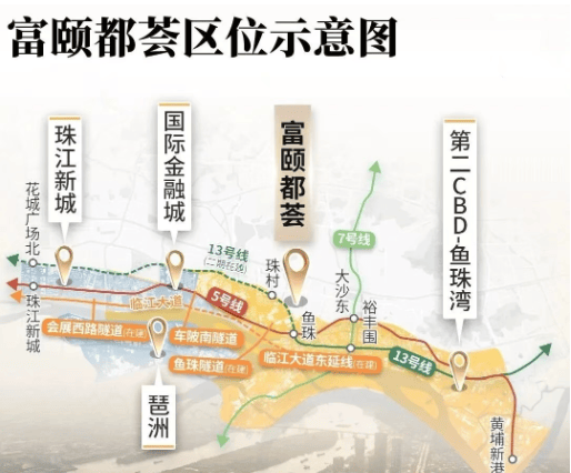 富颐都荟位于黄埔鱼珠板块核心,地处“珠-金-琶-鱼”黄金8公里经济带,是广州第二CBD的重要组成部分。这里不是概念新区,而是临港经济区、国际金融城、琶洲的交汇腹地,未来将承载超万亿级产业布局。
