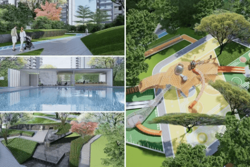 ✅ 生态资源丰富:周边环绕天河儿童公园、杨桃公园、狮山公园、黄埔公园四大绿地,社区内还规划3600㎡主题乐园、720米健康跑道。