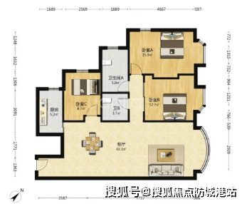 户型鉴赏:131㎡三房双卫,85% 得房率 + 三面江景