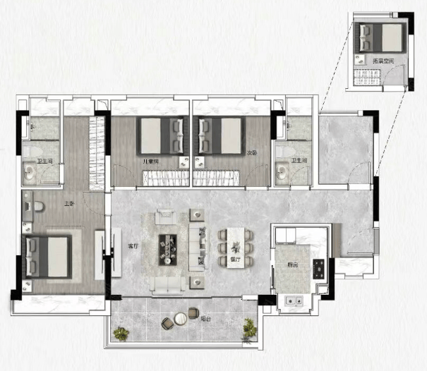 对于刚需家庭而言,户型的空间利用率直接决定居住品质。项目深度洞察广佛购房者需求,主打高使用率刚需、刚改户型,全系采用 N+1 高拓设计,官方宣传使用率高达 100%,领先市面同面积段产品约 15%,以更小面积实现更多功能空间,让每一寸空间都物尽其用,真正做到 “零浪费”,彻底打破刚需户型空间局促的痛点。