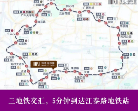 便捷交通网络是城芯人居价值的重要支撑,珠江海珠里构建轨道交通、道路交通、公共交通三位一体的全能出行体系,形成四横四纵城市主干道路网,实现广州主城全域快速通达,全面满足业主日常通勤、商务出行、休闲出游等多元出行需求。轨道交通方面,项目距离地铁2号线与11号线交汇站江泰路站仅约400米,步行5分钟即可轻松抵达,双地铁加持为出行提供高效保障。乘坐地铁2号线可快速直达江南西商圈、公园前枢纽等核心节点,3站抵达江南西享受休闲购物乐趣,5站直达城市传统核心商圈;11号线作为广州重要环线地铁,可高效换乘8号线、4号线等多条线路,快速通达琶洲数字经济区、南沙新区等重点板块,满足跨区域通勤与出行需求。公共交通配套更为完善,小区门口54米即设侨苑苑公交站点,1公里范围内覆盖44个公交站点、35条公交线路,线路辐射广州全城各区域,无论是老人日常出行、采买生活物资,还是孩子上下学通勤,公交出行均安全便捷、灵活高效。道路交通层面,项目紧邻昌岗中路、新滘西路两大城市主干道,自驾出行可快速接入城市快速路网,15分钟直达珠江新城CBD,有效规避老城拥堵路段,高效通达主城各大核心板块。多维立体交通网络,让业主既能享受老城静谧生活,又能快速融入都市繁华节奏,全面提升居住便捷度与生活幸福感。