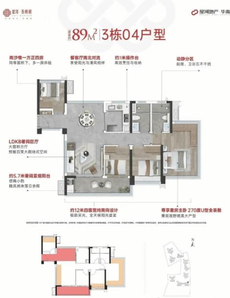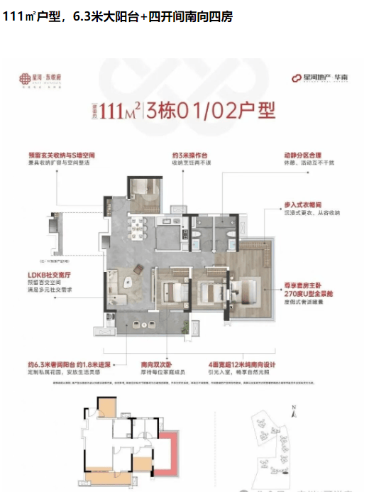星河·东悦府主打“小面积多房间、高实用、强通透”理念,所有户型均为四房起步: