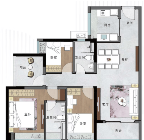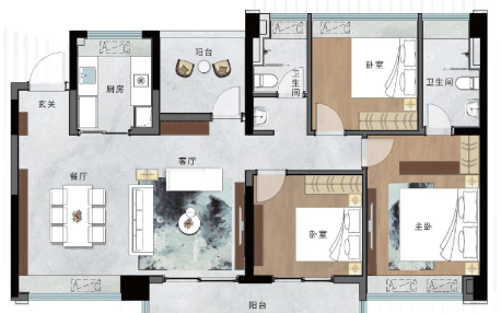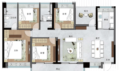 135㎡户型:4+1房设计,豪华景观阳台,享受墅级体验。