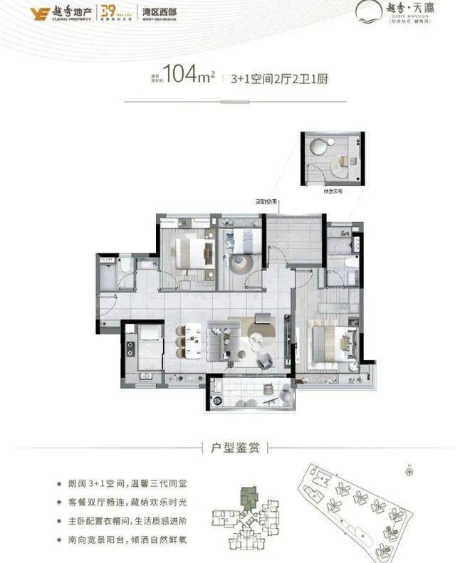 越秀地产凭借雄厚实力打造此项目,占地面积约 4.8 万㎡,建筑面积约 16.8 万㎡,容积率≤3.5 ,绿化率 40% ,营造出低密度、高绿化的舒适居住环境。7 栋住宅采用半围合式望江布局,1 栋大平层人才安置房,总户数 876 户,全南向设计,保证充足采光。楼层数从 15 - 26 层不等,2 梯 6 户的梯户比,兼顾居住的便捷性与私密性。1355 个车位,1:1.3 的车位配比,充分满足业主停车需求。越秀物业提供服务,2.8 元 / 月 / 平米的物业费,以专业、贴心的服务,为业主打造温馨的家园。约 1.4 万㎡的中央园林,为业主提供休闲、娱乐的空间,提升居住品质。