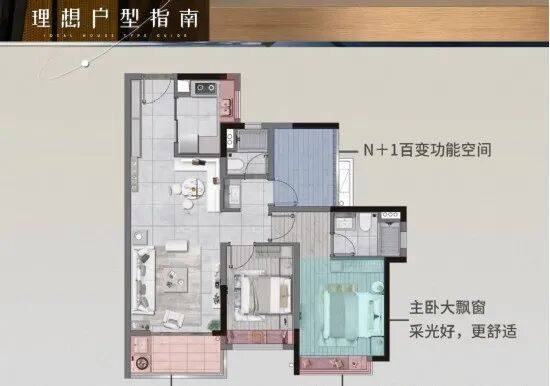 采用LDK布局,连通270°朗阔阳台,南北对流主卧套房,L型瞰景飘窗