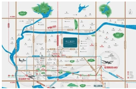 花语天珹位于花都中轴线CBD板块,也就是大家常说的“融创板块”。这里可不是普通新区——它是花都政府以“珠江新城”为蓝本打造的未来城市中心,定位为大湾区首个绿色金融CBD,左邻广州北站,右靠白云国际机场,是广州少有的“空铁双枢纽”交汇区。