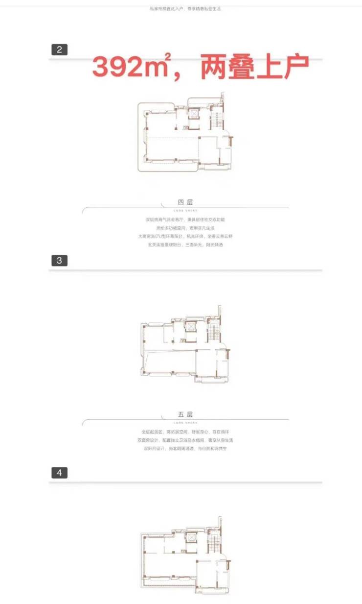 基本信息:占地面积约 13.7 万㎡,建筑面积约 7.1 万㎡,容积率单组团约 0.99,首推 7 栋楼共 29 套。产品户型有两叠(上叠 392㎡、下叠 437㎡)和三叠(上叠 285㎡、中叠 279㎡、下叠 305㎡),使用率最高可达 345%,每户都有私家电梯,车位配比两叠 1:4、三叠 1:3,简装交付,2025 年 11 月 29 日交楼。