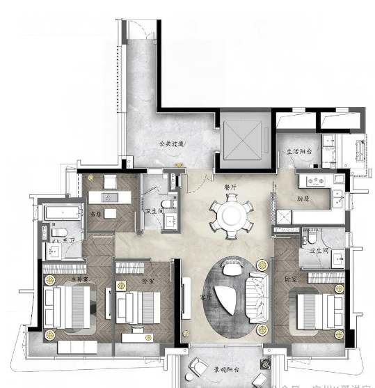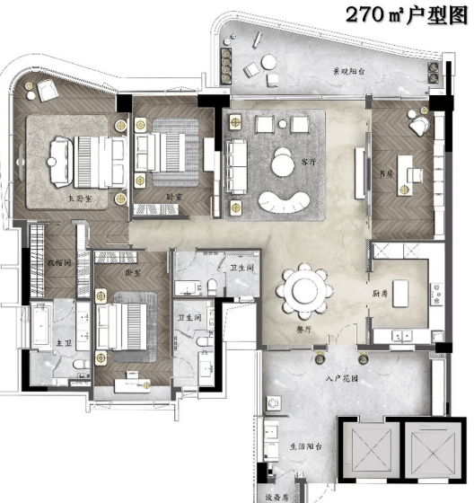 洋房户型:140㎡ - 270㎡四房双主套