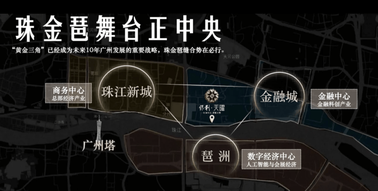 地段决定价值,环境滋养生活。保利天曜坐拥金融城西区核心区位,地处广州黄金三角之一的金融城板块,与珠江新城CBD紧密相连,距离“顶流”地块南方面粉厂仅500米不到,与广州塔、琶洲会展中心等地标性建筑近在咫尺,地理位置得天独厚,尽享城市发展红利。