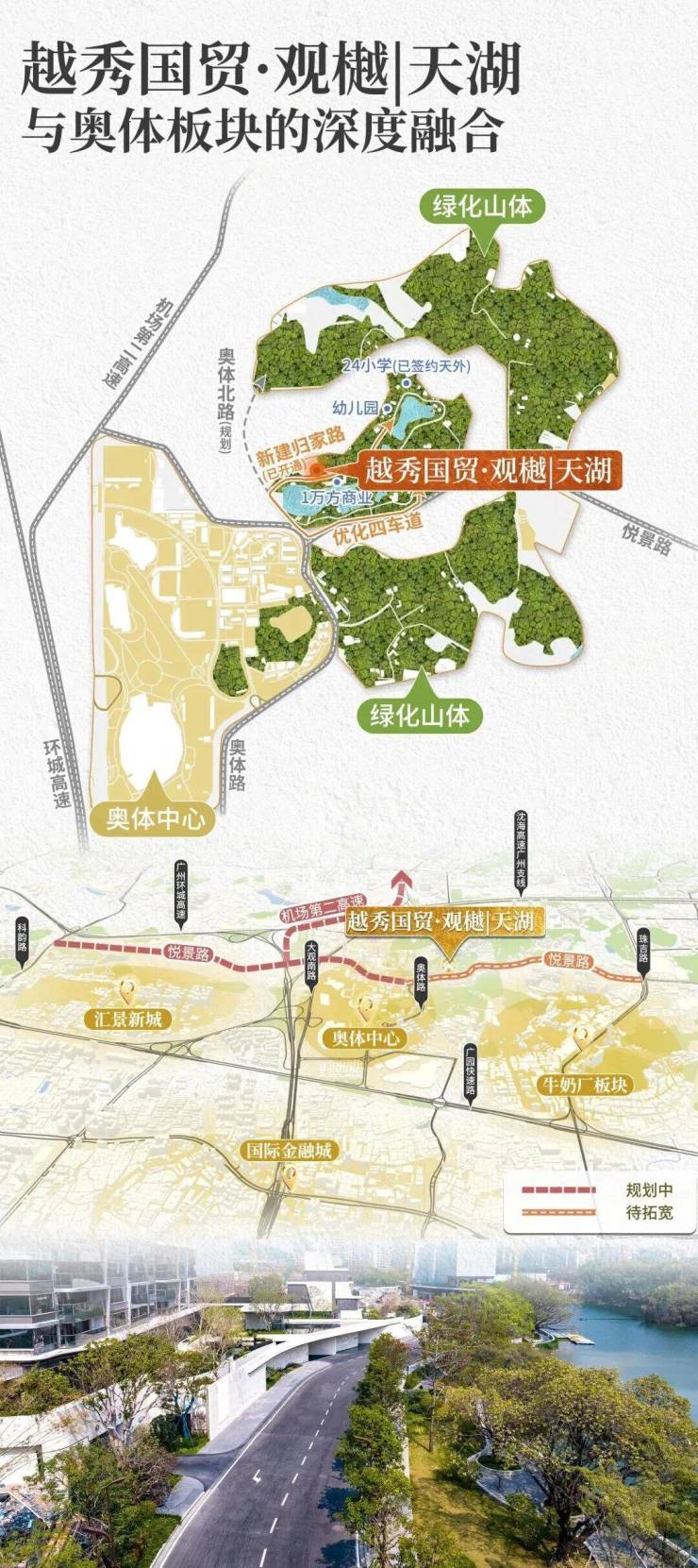 悦景路通车,越秀·观樾及缦云广州等新盘业主,交房即可享受悦景路改造后带来的便利。