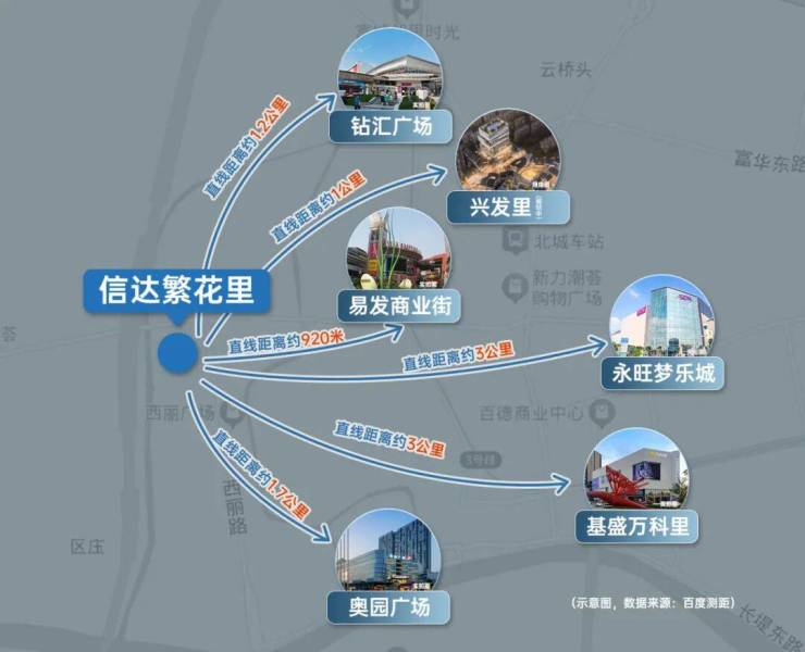 信达·繁花里距离三大商圈仅需几分钟车程,提供丰富的生活娱乐选择。此外,项目周边还有多家甲级医院,确保居民健康得到保障。生态方面,项目自带双公园,且周边有多个自然公园,营造出宜居的生活环境。