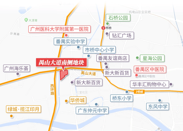虽然目前步行至市桥地铁站的距离稍远,但通过公共交通或自驾出行仍然非常便利。未来规划中的26号线可能在附近设站,这将进一步提升项目的交通便捷性。周边的道路网络发达,如禺山大道、西环路等,使得自驾出行变得尤为方便。