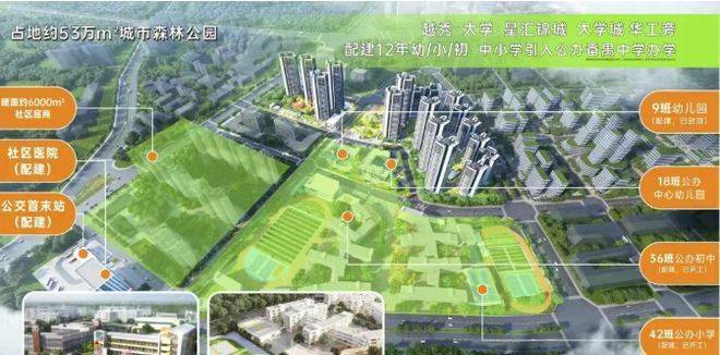 项目的核心竞争力,在于其将“低密舒适”与“顶尖学府”这两大改善型需求的核心要素,在极具亲和力的总价层面上实现了完美结合。社区整体容积率控制在3.22,楼栋布局舒朗,并精心打造了总计约2.5万平方米的双公园系统,居住环境开阔宜人。而更重磅的,是项目引入了番禺中学教育集团,开办了42班小学+36班初中的九年一贯制公办学校,且已开学。番禺中学是区内顶尖的教育品牌,其集团的入驻,为社区奠定了黄金般的教育底色。这种“低密公园住区+名校护航”的配置,通常只出现在高端改善盘中,而星汇锦城以其亲民的价格实现了这一组合,形成了强大的差异化优势。