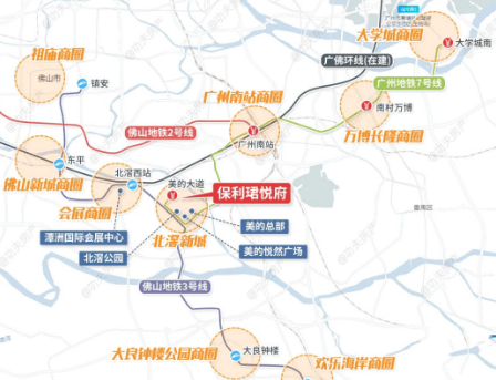 保利珺悦府位于北滘新城的核心区域,紧邻广州地铁7号线顺德段美的大道站,8站直达广州南站,串联起广佛科创黄金主轴。此外,项目周边还规划有佛山地铁3号线,进一步提升了出行的便利性。项目门前即是一线湿地公园景观,东北侧则是滨江景观带,居住环境极为优越。