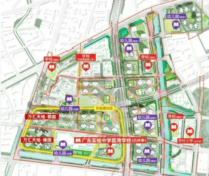 买房子,买的不仅是一套居所,更是一整套生活配套。臻园的配套优势,早已超越了单一楼盘的范畴,依托花地湾1平方公里的连片开发,这里正形成“产、商、住”一体的新城市中心,1公里范围内,商业、教育、交通、医疗等配套应有尽有,真正实现“一站式”生活大城的理想。教育方面,项目自带一所54班的九年制省实验学校花地湾校区,36班小学+18班初中的配置,已于2023年9月正式开学,在家门口就能享受省级名校的教育资源。不仅如此,整个万汇天地规划了7所幼儿园、3所小学、3所中学,从幼儿园到初中的全龄段教育需求都能得到满足,让孩子的成长之路少走弯路。