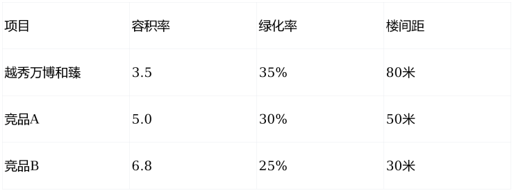 五、全能型住宅价值评分表:越秀万博和臻VS竞品)
