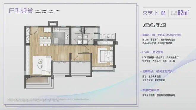 项目首推75㎡、82㎡三房和105㎡四房,其中75㎡户型尤其值得关注——它做到了真正意义上的三房两卫,主卧带独立卫生间,次卧与书房灵活分隔。客厅、餐厅、厨房、阳台连成一体(LDKB布局),视觉上放大了公共区域。阳台进深近1.8米,晾晒与休闲功能可兼得;玄关、飘窗、走廊等边角空间也被纳入收纳系统,比如利用飘窗下方做抽屉柜,或在走廊尽头嵌入薄柜放清洁工具。对于刚需或年轻家庭来说,这种“小而精”的设计比单纯追求面积数字更实在。