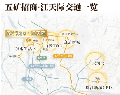 五矿招商江天际紧邻广州12号线、13号线及佛山8号线(规划中),形成四通八达的城市轨道交通网络,轻松连接广州各大核心区域。特别是13号线(预计2025年通车)将途径纪念堂站等多个黄金换乘站,使得白云、荔湾、越秀、天河四大主城区一轨畅通,串联省政府、纪念堂、珠江新城等核心区域。此外,项目距离亚洲最大的城市枢纽——白云站仅2.7公里,通过白云二线和棠槎路,居民可以快速抵达白云新城及其他重要商圈。