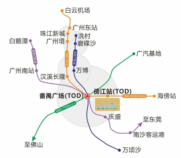 金海岸花园位于番禺广场板块,紧邻3号线东延段傍江站TOD,距离地铁站仅500米,1站直达番禺广场、2站可达万博CBD、4站即到珠江新城,交通网络四通八达。项目周边汇聚了5条地铁线路,包括3号线、3号线东延线、17号线(规划中)、18号线及22号线,极大地提升了居民的出行便利性。无论是上班通勤还是周末出游,都能轻松实现。