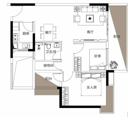 52㎡小户型洋房:层高达到了3.6米,配有7米餐客双厅和超大景观阳台。