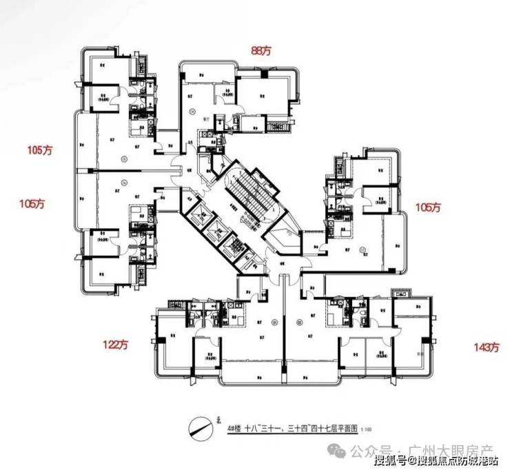 143㎡户型,南向宽景4开间设计 | 约36.5M环幕采光面 | 270°环幕瞰景主卧|多元化功能阳台