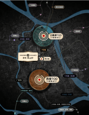 保利·锦上印坐落于世界级商圈——白鹅潭CBD的核心地带,这里不仅是广州城市发展的新引擎,也是连接珠江新城与国际商务区的重要枢纽。项目距离地铁1号线坑口站仅约900米,通过高效的公共交通网络,居民可以轻松抵达城市的各个角落。此外,周边规划有约40万方滨水综合商业公园,进一步提升了项目的吸引力。
