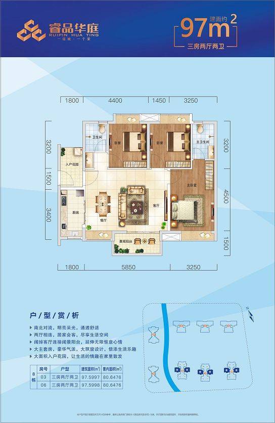 户型设计注重品质与实用性。建面约 84㎡ - 97㎡的户型,南北对流,通风采光良好。户户均带入户花园,增加了居住的舒适度和私密性。虽未明确提及得房率,但从户型设计来看,空间利用较为合理,能够满足不同家庭结构的居住需求,为业主打造舒适的居住空间。