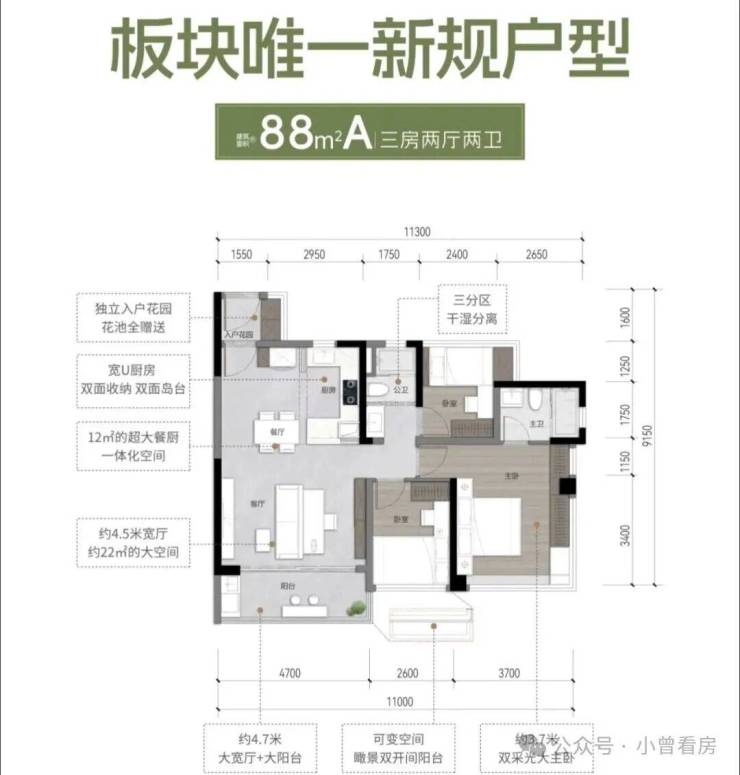 产品:建面77㎡、88㎡、98㎡、105㎡、135㎡