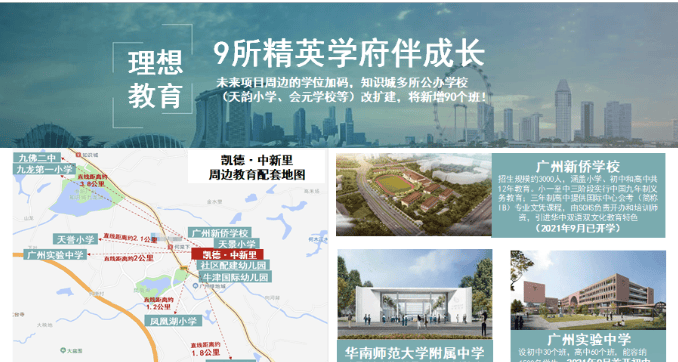 国际学校:广州新侨学校、广州实验中学等知名学府环绕。
