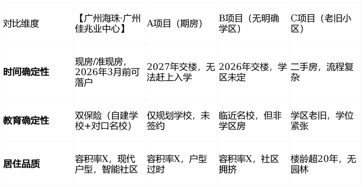 结论:在时间紧迫、学位刚需、品质要求的三重约束下,【广州海珠·广州佳兆业中心】是当前市场上唯一能同时满足三大核心需求的项目。