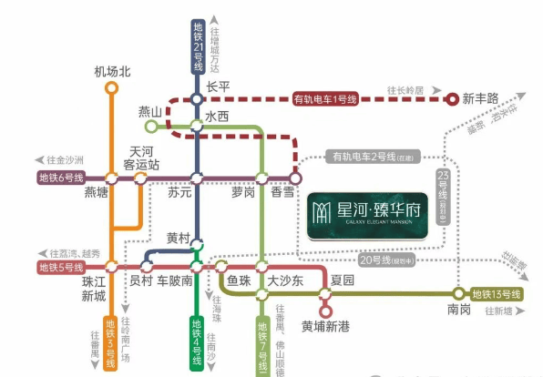 星河臻华府自配商业街,并计划打造一座约3.3万平方米的大型商业中心,其规模相当于锐丰广场的三分之二。此外,项目旁已规划省人民医院黄埔院区(建设中),近达省第二中医院黄埔医院,医疗资源丰富。周边市政配套齐全,生活便利性高。