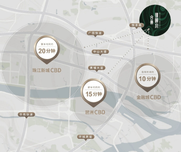 合景臻颐府所处的天河智谷板块南部,是天河重点发展的核心区域,以 “新一代信息技术” 为主导,重点布局 5G、高端软件、人工智能、物联网等 IAB 产业方向。目前已聚集网易总部、中国移动南方基地、太平洋网络等近 50 家企业总部及约 2500 多家高科技企业,总投资额约 800 亿元,预计年产值规模达 1100 亿元,产业集聚效应显著。