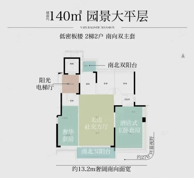 整个项目分为南北两个地块,南侧分布20栋住宅,北侧分布5栋住宅,总共25栋住宅。项目推出了多种户型,面积段从125平方米到250平方米不等。特别推荐的是加推的12栋中轴园景建面约140平方米户型和8栋的190平方米户型,这些户型采用了板楼设计,享有中轴园林景观,使用率高,空间灵动。例如,190平方米户型采用2梯2户设计,窗地比高达38%,主卧设置270°大飘窗,极大提升了居住体验。