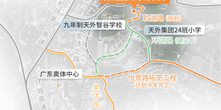 自驾:环城高速、广园快速路,多维路网通达“珠金琶”三大CBD以及天河智慧城。悦景路升级,规划聆湖路、环湖路(西侧已基本完工)加速兑现,畅联世界大观,实现板块资源共享(数据来源:天河区人民政府)