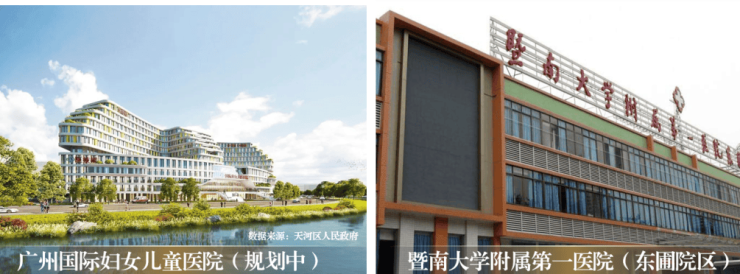 项目2 公里内社区卫生服务中心,5公里内共计4所三甲医院+4所公立综合性医院(数据来源:天河区人民政府、广州自然规划局;距离来源:百度地图测距)