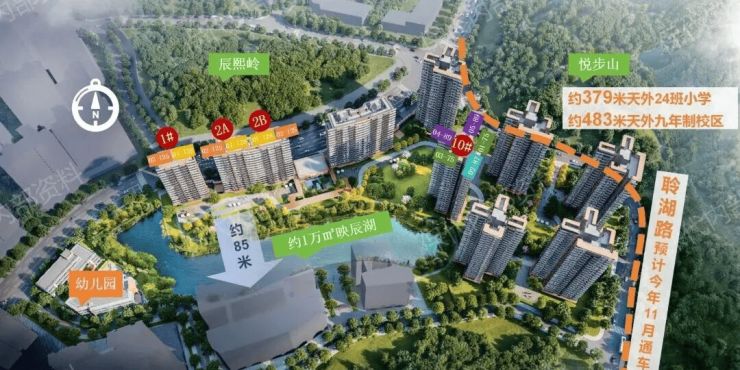 丰厚的湖景资源,环抱映辰湖东西跨度近300米,离湖最近处约40米,专门开辟了私家步道与映辰湖直接相连。