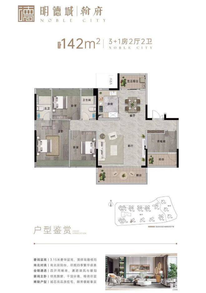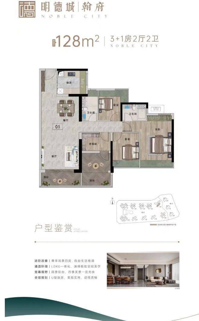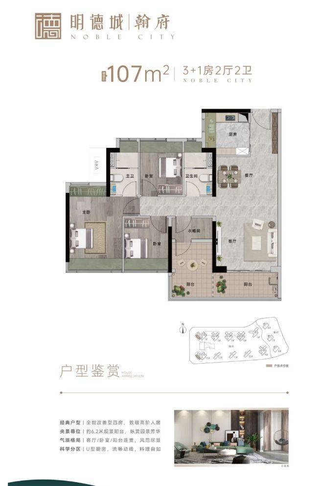 明德城由拥有 38 年深厚底蕴的东建集团匠心打造,作为禅桂中心的百万方综合体大城,其规模宏大,集多种城市功能于一体。项目共 10 栋楼,6000 户,翰府 1600 户,容积率 4,绿化率 30%,配备约 1200 个车位,总建筑面积达 100 万㎡ 。