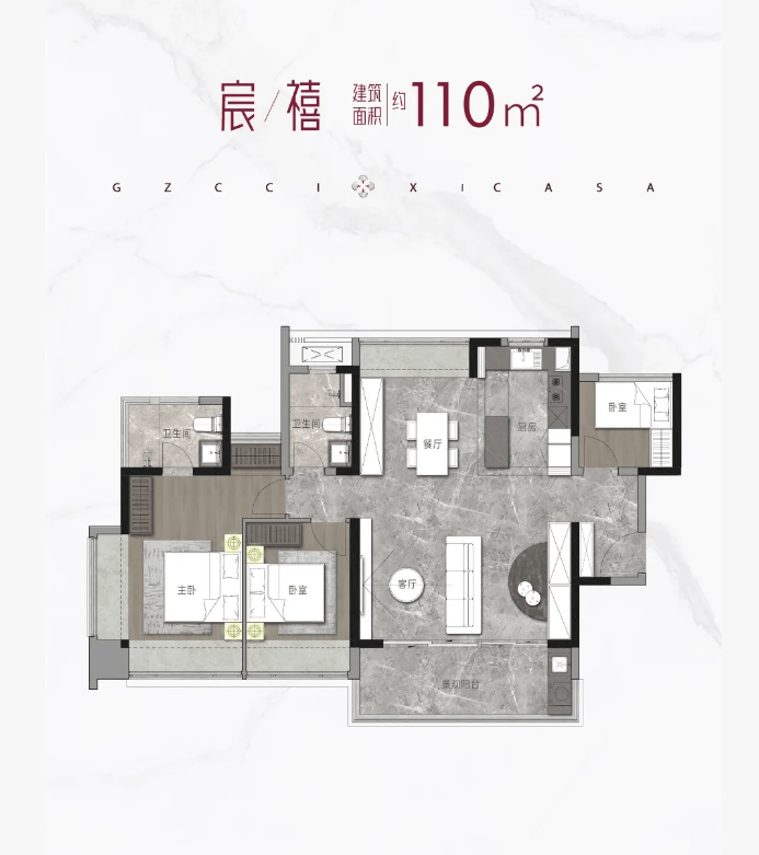(二)建面110㎡三房两卫:空间实用,二胎家庭的理想之选