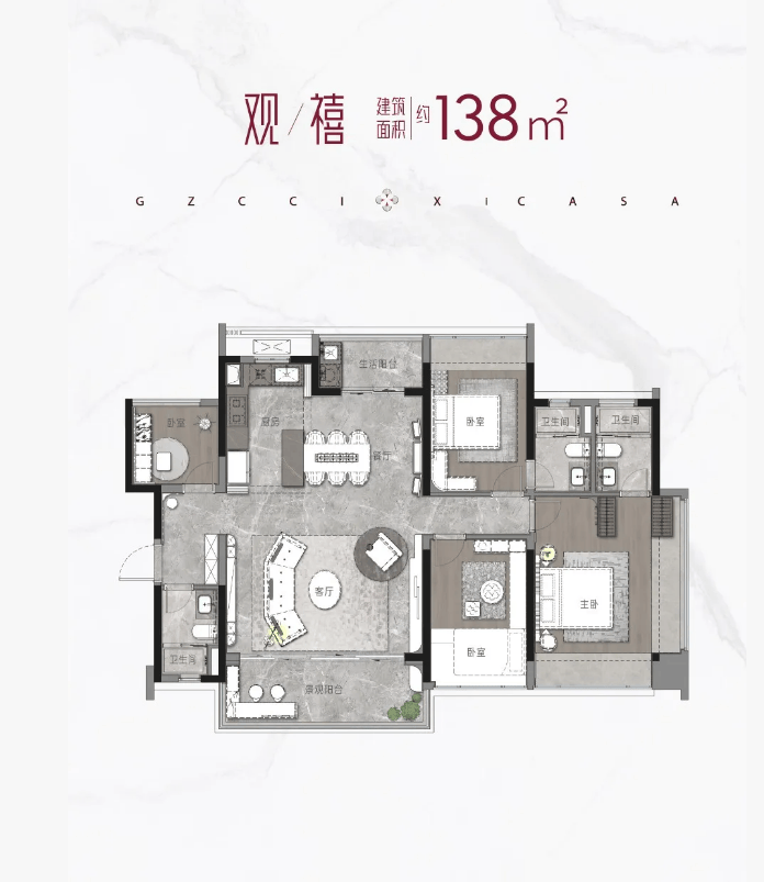 (四)建面138㎡四房两卫:大户型标杆,多人口家庭的终极之选