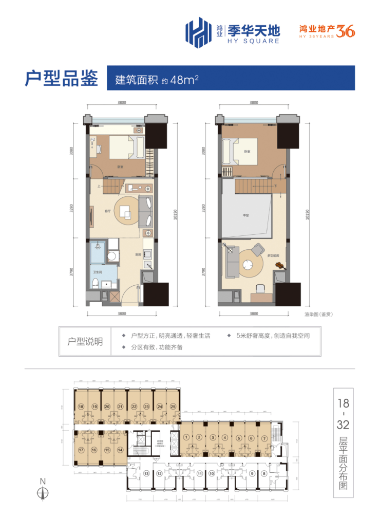主力户型面积约48平方米,虽面积紧凑,但设计极具巧思。平层产品层高3.5米,视觉开阔不压抑;LOFT产品层高达5米,可轻松隔出两层使用,实际得房率接近90%。所有户型采用3.8米大开间设计,搭配宽幅飘窗,采光通风优异;框架结构允许业主根据需求打通相邻单元,实现“一户变两户”或“小家变大家”的灵活布局。无论是单身青年自住、年轻夫妻过渡,还是投资者分割出租,都能找到适配方案。毛坯交付更赋予个性化装修自由,契合当下年轻人“轻硬装、重软装”的居住理念。