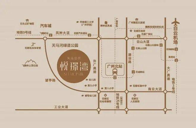天马丽苑・悦璟湾坐落在花都区内,紧邻已开通的地铁9号线花都汽车城站,距离广州北站也非常近,提供了极大的出行便利。周边教育资源丰富,包括花都区实验中学、秀全中学等多所优秀学府环绕,为孩子的成长提供优质的教育保障。此外,项目自身还配套有幼儿园和以省一级标准建设的小学,进一步增强了其吸引力。