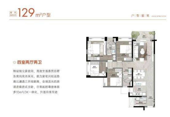 精装标准对标奢华酒店:项目采用全屋精装交付,甄选大金中央空调、唯宝卫浴、德格厨房系统等国际一线品牌,部分用材与香格里拉酒店同源,确保居住品质与耐久性。室内设计注重功能分区与动线优化,129㎡起步即做四房两厅两卫,180㎡户型更配备双主卧套房、独立家政间及超大景观阳台,充分满足改善型家庭对空间尺度与生活仪式感的需求。
