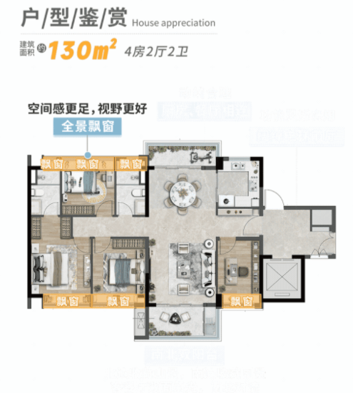 对于对功能分区有明确要求的改善家庭,130㎡四房两厅两卫无疑是最佳选择。这款户型总价494万起,以其阔绰的空间尺度和科学的功能布局,诠释了什么是真正的“改善型居住”。