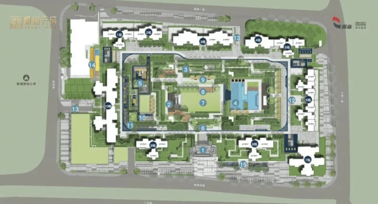 总占地约5.2万㎡,总建面约15.4万㎡,这样的体量既保证了社区的规模效应,又避免了超大社区带来的管理难题。围合式的布局方式,将建筑沿地块边缘布置,中间留出了巨大的中央空间用于打造园林景观。这种布局不仅最大化了景观视野,还形成了良好的风道,有利于自然通风。每一栋楼都能享受到无遮挡的采光和通风,真正实现了“户户有景,家家向阳”。