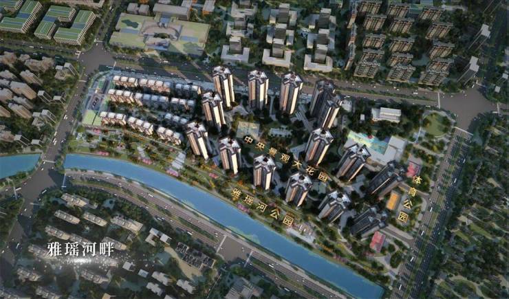 推开窗户,项目南向直面雅瑶河。河岸的带状绿地,将由开发商中建三局进行提升,打造为可亲水、可漫步的瑶河公园。这构成了项目的第二重公园景观,实现了“推窗见河,出门入园”的景观视野。