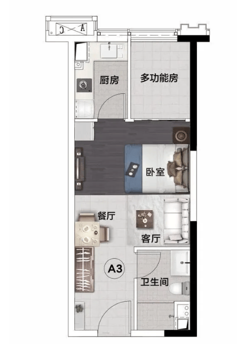 🏠 百变 LOFT(49.72㎡一室二厅一卫):