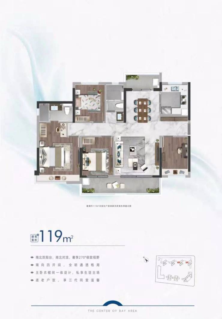 💯 建面约119m² 四室两厅两卫户型