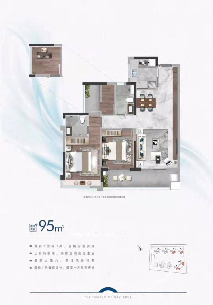 💯 建面约95m² 2+1户型