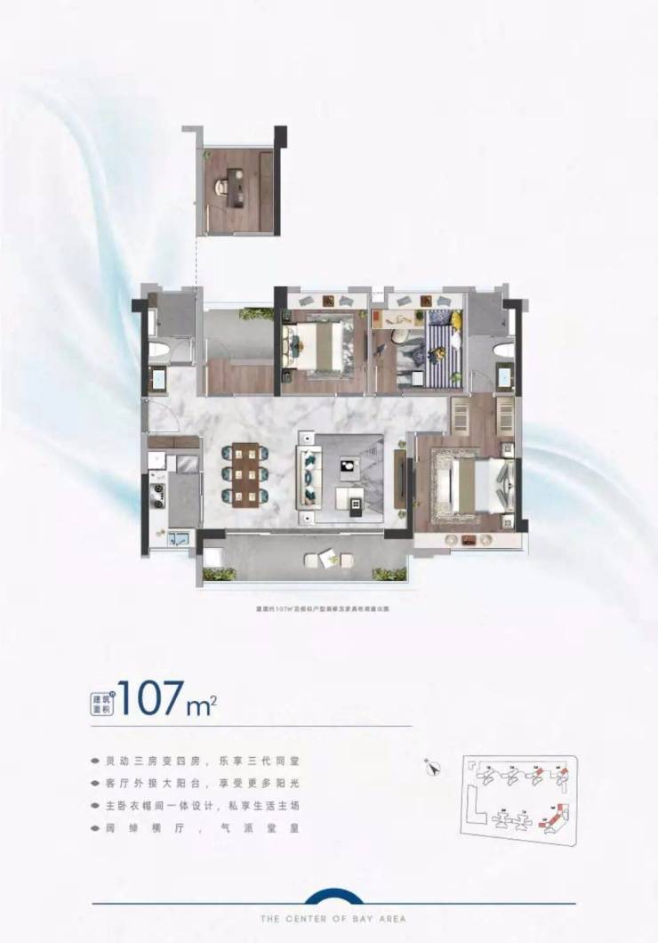 💯 建面约107m² 3+1户型